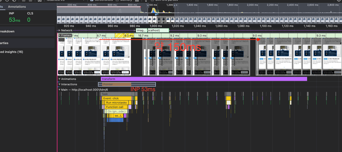 모달 렌더링 속도 개선: 150ms -> 47ms (아래 이미지 참고)