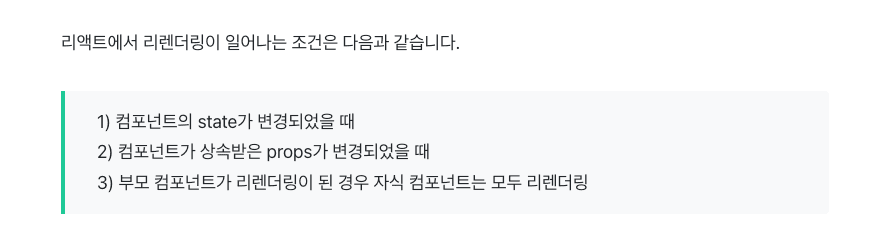 - 이때 Props가 변경되어도 자식컴포넌트는 리렌더링되지 않아야 함.