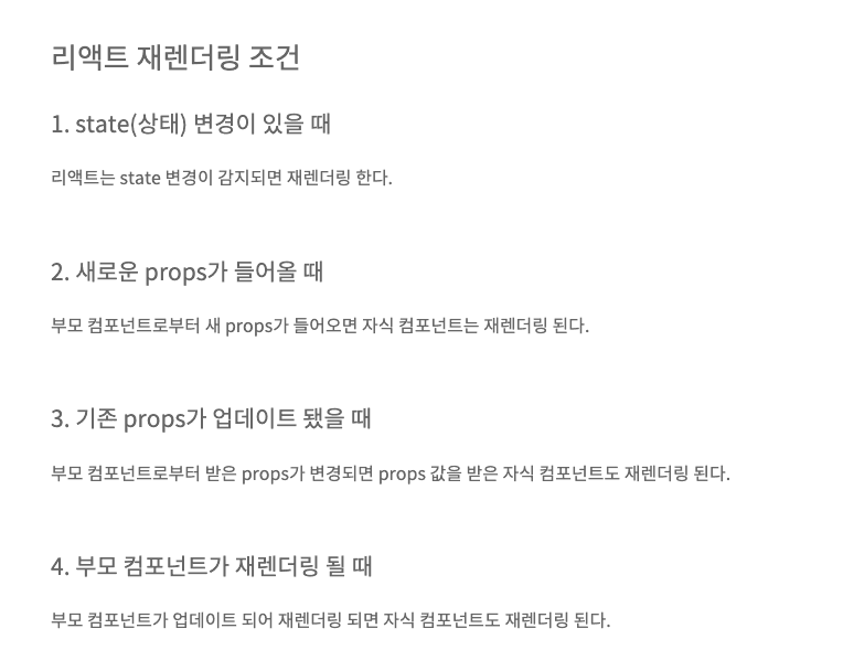 그러므로 리렌더링을 막기 위해 Props에 메모이제이션을 하는 등의 일은 무의미하다.