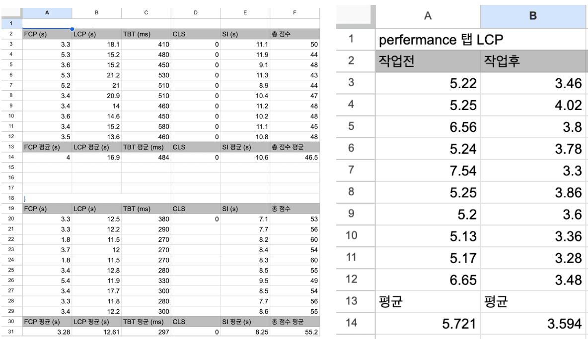 두 시나리오 모두 LCP가 개선되었다.