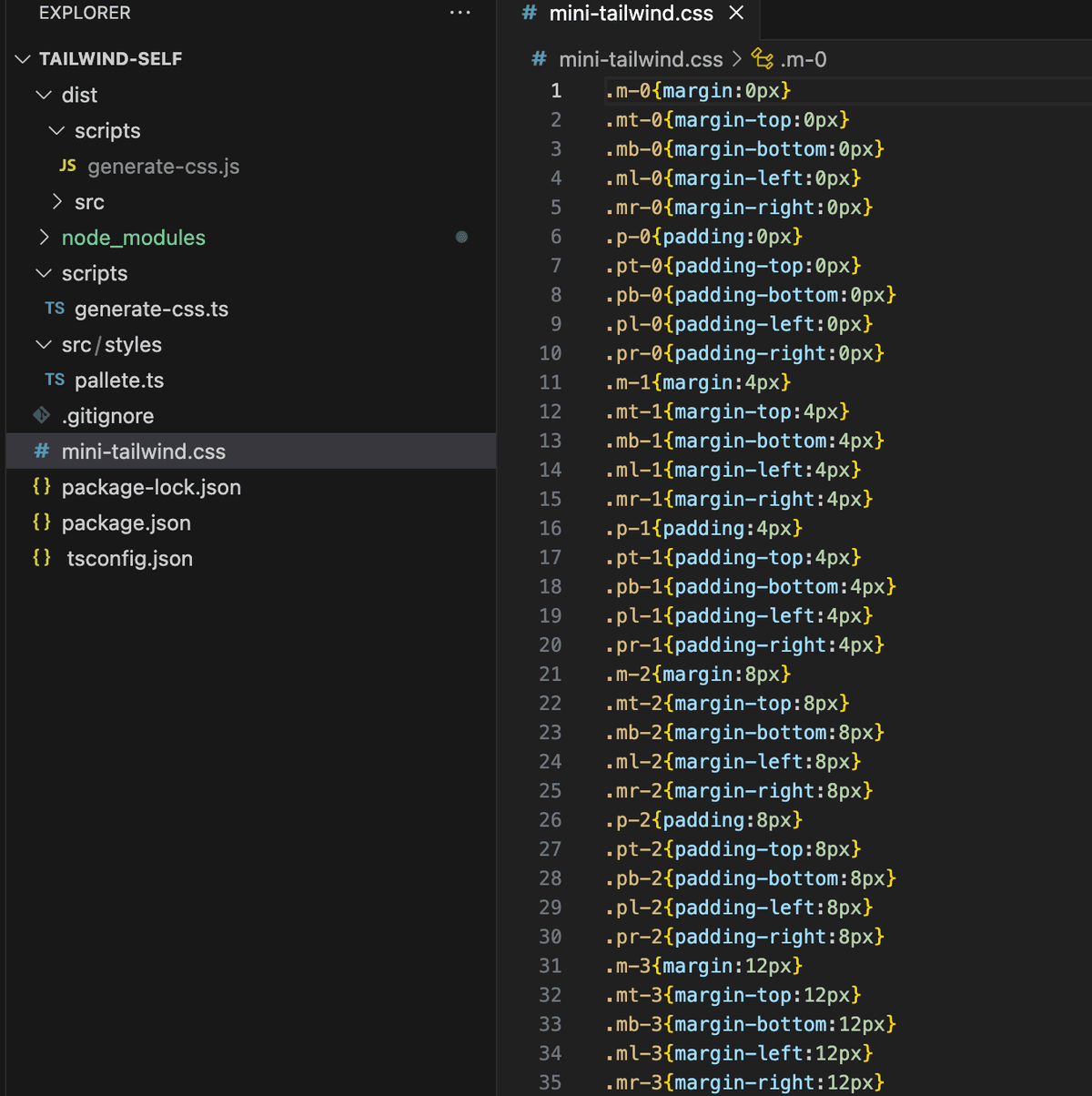 npm run build:css를 입력하면 generate-css.ts를 dist파일에 js로 컴파일하고 컴파일된 js를 스크립트 실행시킨다.