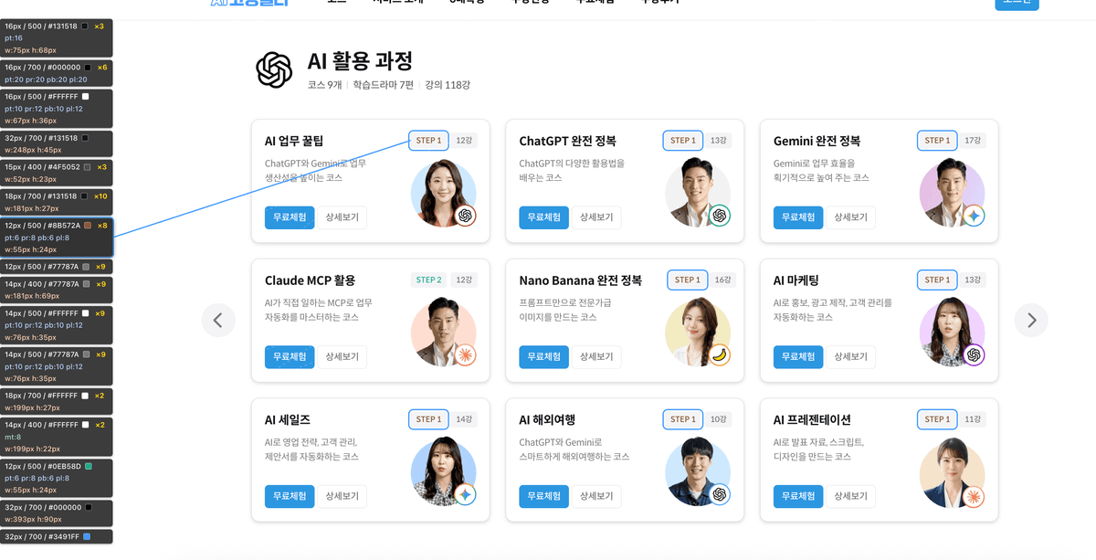 이런식으로 같은 스타일을 가진것들을 묶어서 좌측에 두고 호버시 선으로 연결하여 확인할 수 있게 했다.