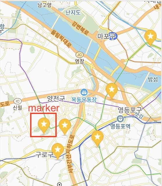 당시 useMap.tsx 에서는 marker가 누적되지 않도록 이전 marker 목록을 다음 렌더링때 제거하기 위해 보관하는데, 문제는 이 보관용 값을 state로 관리한다는 것이다. (marker는 아래 이미지 참고)